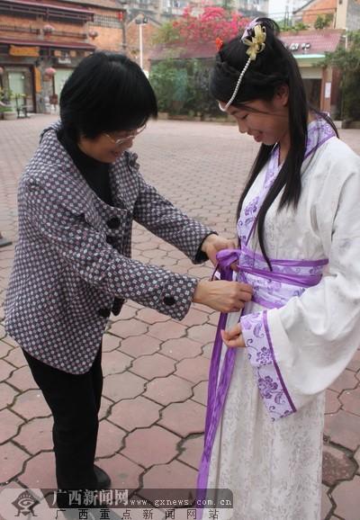 黄艳芳教授正在帮学生调整服装。广西新闻网记者 吴婷婷摄