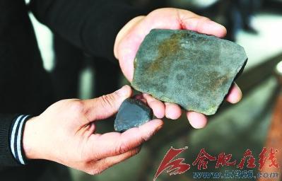 根据10号墓发掘出的青铜戈可以看出,墓主人可能曾经是武将。但是,最令人兴奋的还是10号墓中发掘出来的类似墨石和砚台的文物。“这块石头一面很光滑另一面很粗糙,由于发掘出来时已经破损所以很难看出是什么。随后我们又在它的旁边挖出来另外一块小一点的石头,用水冲干净以后发现用手拿着的时候总会有黑色的东西沾到手上。洗干净以后再仔细看,这块石头也是一面光滑一面粗糙,虽不完整但是基本上能看出来很像一块墨石。”肥东县文物管理所所长彭余江说,这样的墨石目前在安徽出土的非常罕见,“这块墨石能看出来应该是墓主人生前使用过的,墓主人生前一定也是饱读诗书。”
