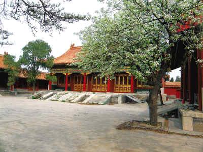 寿康宫:正殿前两树梨花开得正盛。 记者 杨一枫 摄
