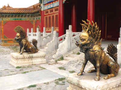 慈宁门:一对铜鎏金瑞兽蹲守门前,引人注目。 记者 杨一枫 摄