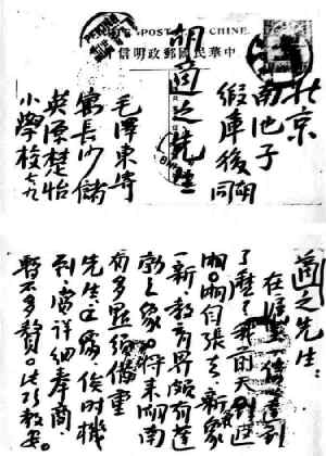 而据胡适《日记》记载,1920年1月15日,“毛泽东来谈湖南事”。两者当是同一件事。1920年4月毛离京赴沪,7月7日返抵长沙,住楚怡小学。而“驱张运动”已收到成效,明信片所写“湘自张去”,即指张敬尧已于这一年的6月,被赶出湖南。7月9日,寄信给胡适,就是这张明信片。从二人的交往看,毛泽东当年对胡适是敬重的。