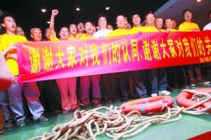 随后,小崔、韩红等人一起向农民工代表赠送被子、洗发水、沐浴露等慰问品,送上锦旗,上面写着“危难当头你伸手,表示尊重敬杯酒!”并一起向在场的农民工朋友鞠躬致谢,感谢他们在第一时间向有难的人伸出了援手。