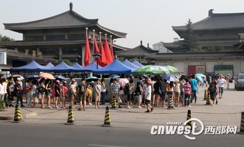 上午10点多,在陕西历史博物馆的发票窗口外已经排起了200多米长的队伍。据记者粗略的调查,队伍中慕名而来的外地人居多,而为数不多的本地人,也基本是以陪外地朋友来转为主。