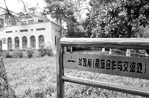 南京大学院内民国建筑何应钦公馆原先是斗鸡闸的一部分,现为南大国际合作与交流处。