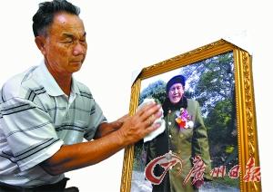 曾老儿子擦拭曾老生前的照片。