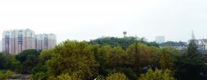 站在附近的高楼上向下望去,因为山上树木茂盛,整座山更像一个精美的盆景嵌在小区里。