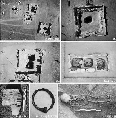 除了发现带有木质葬具和陪葬品相对丰富的重要墓葬外,还有多墓穴共处一围的普通墓葬,显示出该墓地层级的复杂性。考古人员还发现并确认了不同的葬式,如一次葬的侧身屈肢葬、火葬、二次葬、迁葬和肢解葬等。一个墓地有各种葬式,这在新疆是比较少见的。此外,墓地建成时间也有一定的差距。墓地大体上从北向南延续,北部的年代可能偏早。在墓葬的构建形式上,也有一些变化。如北边墓葬深,且有规则的石栅;南边墓葬浅且不规则,大石板几乎无法找到而被代以卵石。这均需要进一步研究。