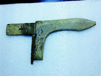 湖北日报讯 图为:刻有铭文的随国戈。(记者 包东喜 楚天快报记者 金业兴 摄)