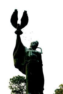 放鹰台上最著名的景点,即是“李白放鹰”的雕塑。塑像于2000年建成,通高12.99米。只见李白面容清癯,双目炯炯,衣袂飘飘,右手高擎一只振翅欲飞的小鹰,欲助其脱离樊笼,回归自由。
