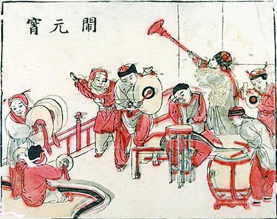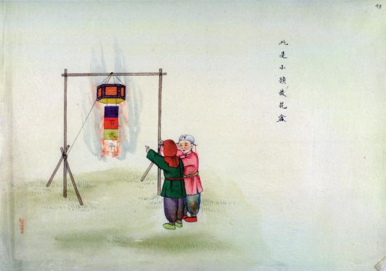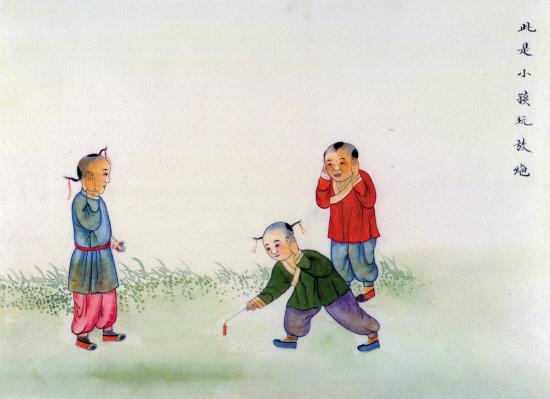 小孩放花盒,即燃放烟花盒子,古代烟花爆竹的一种