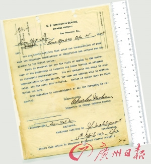 参与互动(0) 1904年4月15日旧金山美国移民局判决书,告知孙中山将由原船送回檀香山,如不服可上诉