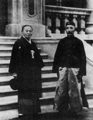 张作霖(右)与大仓喜八郎曲香昆供图