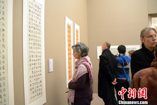 中新网巴黎3月14日电 (记者 龙剑武)中国著名女书法家孙晓云作品展14日晚在法国巴黎中国文化中心开幕,向法国观众呈现传承三千年的汉字艺术之美。
