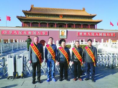 护宝农民代表参观游览了天安门广场和故宫博物院,从左到右依次为:徐海军、张亚斌、曾小刚、范琪、刘广田。张 妮 摄