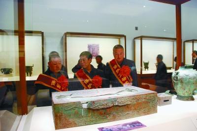“站在台阶上面,戴着大红花、绶带,一动不敢动,第一次见这么大场面,被这么多人关注,还是挺光荣的。”刚参加完特展开幕式的曾小刚笑着说。同行的张亚斌似乎有不同意见,“从来没干过这事,骨头都僵了。”张亚斌说笑着,动了动酸了的肩膀。随后,他们与参加开幕式的领导和嘉宾们走进展厅,“看,这件就是我们当时挖出来的。当时上面都是土,现在像样多了。”护宝英雄们纷纷指着自己发现的文物,告诉围观的记者和观众。