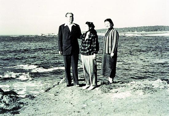 1947年,冯玉祥和夫人李德全、女儿冯理达在美国太平洋西岸