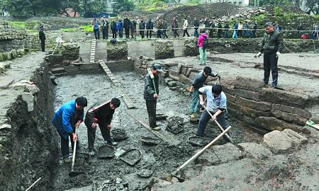 2012年12月12日,老鼓楼衙署遗址文物发掘现场。 记者 李化 摄