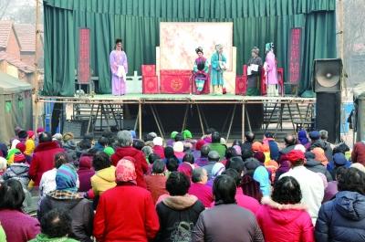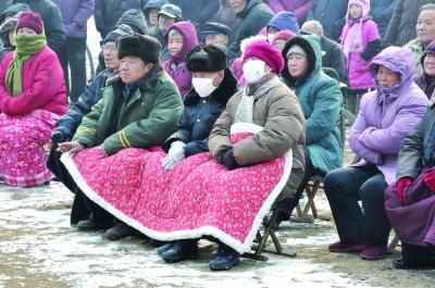淄博市五音戏剧院严冬送戏下乡,吸引众多群众观看,有的甚至抱着棉被“坚守”。