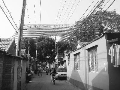 与周围胡同、四合院极不协调的Galaxy Soho。 李佳霖 摄