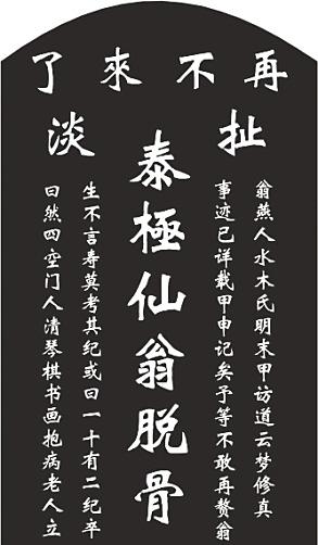 栾女士说,这块碑的碑首横刻“再不来了”4个字,碑的正中竖刻“泰极仙翁脱骨处”7个大字,而“泰”字左右,则是“扯淡”俩字,全碑共刻111个字。这块碑的奇特之处是,无墓主人姓名,也无立碑时间,让人感到扑朔迷离。因为“扯淡”两字特别明显,群众都称它为“扯淡碑”。“可能是墓碑主人活着时不如愿,悲观厌世,临死前才写下‘扯淡,再不来了’。”栾女士说,为了考证墓主人是谁,学者写了许多文章,有人说是明朝勋臣沐氏的墓碑,还有人说是明崇祯皇帝的墓碑。