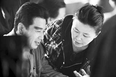 导演陈力(右)为周恩来的扮演者孙维民说戏