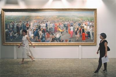 此次主题创作活动历时一年多,收到了700余件作品。值得一提的是,参与画家不仅有土生土长的北京人,也有来自外地的画家。如巨幅油画《景山放歌》的作者何绍教,他为了收集绘画素材,多次从杭州来北京。在某天早上,他爬到景山公园眺望紫禁城全景时,看到晨起锻炼的老人,唱合唱的妇女,拿相机的游客,瞬间产生了灵感,“这几天我在北京见到的生动场面一下子就被串联起来”,何绍教说,他回到杭州后立马就根据内心感受作了一幅长卷。之后他又多次奔赴北京天坛公园、玉渊潭公园,获取了丰富的人物素材,耗时半年多完成了这幅《景山放歌》。