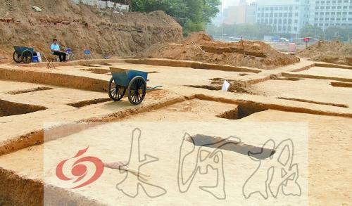 9月16日,记者来到位于人民公园南侧附近的考古发掘现场,10余位考古工作人员和工人正在小心翼翼挖掘,占地约600平米的发掘面上分布着数十个大小、深浅不一的发掘坑。