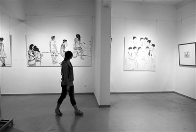 景峰画廊推出当代水墨对话油画。 新京报记者 秦斌 摄