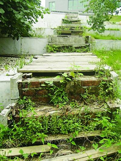 记者看到,在公园内有一段二十多米长的木栈道,经由台城路向城墙方向延伸,拾级而下可直达城墙脚下,原本十分漂亮,也很便利,可是由于是露天木质台阶,经不起日晒雨淋,现在已出现木条大片腐烂、木栈道整段缺失的状况,在台阶两侧木条连接的地方,由于腐烂,隐藏在木板中的铁钉也裸露出来,锈迹斑斑,看上去容易绊倒、戳伤游客,十分危险。