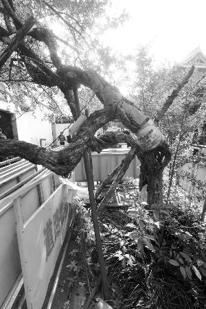 夫子庙114岁石榴树歪倒在屋顶上(图)