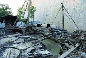 大坑与城墙根之间有一个粗水管,工人们说,这是地下自来水管,原来埋在地下,现在因为施工露出地面。原计划在城墙根与粗水管之间挖一个深坑。为减少对城墙的影响,后来修改了计划,改在粗水管外面挖坑了。