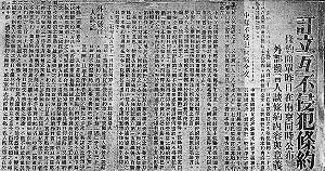 中国与苏联于1937年8月在南京签订《中苏互不侵犯条约》,此为当时国内报纸的报道。