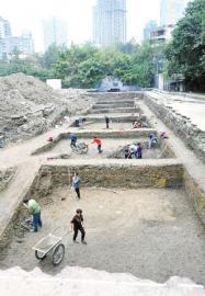 今年10月14日,为配合成都体育中心篮球场工程建设,成都市考古队对施工地点例行考古勘探。位于人民中路一段的后子门成都体育中心遗址,分6个探坑,面积近600平方米。