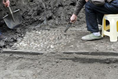 勘探进行到现在,除了发掘到大量的碎瓷片外,就在大概10天前,他们发现了一条蜀王府内的路。“路的边缘是立起的。他说,路位于5号坑内,宽约两米,因为路是断开的,不好判断具体长度,可以肯定的是,这是一条人行道。“现在这条路,已经整体移走了。”在4号坑里,记者看到有类似鹅卵石的两条石质长形物,呈直角交叉状。“这也是路,宽度大概有1米,。”易立分析,是宋代的,初步判断是院子的天井。