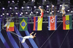 朝鲜代表团表演的《空中飞人》渤海早报记者 周勤隆 摄