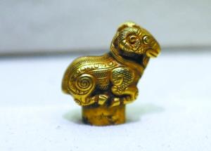 展览中有一件金羊杖首,袖珍别致。专家介绍,这相当于汉代通行的“老年证”。