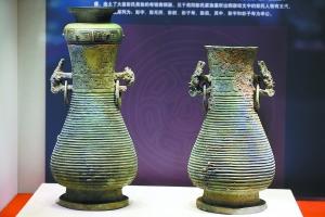 昨日,南水北调中线工程水源地南阳出土文物在首都博物馆展出,这是南水北调工程出土文物首次在京展出。为期两个月的展览期间,市民可免费观展,领略98件青铜器、玉器、陶器、汉画像石、汉画像砖等出土文物带来的楚汉风韵,以及古今南阳的繁荣景象。