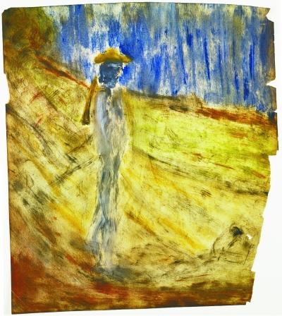 这次展出的作品中,有不少体育题材的手稿,如《法国运动报上嚎叫的足球运动员》、《跳水板上的男人》、《板球运动员》、《撑杆跳的选手》以及贝瑞捐赠给南艺美术馆的《拳手》。贝瑞告诉记者,培根生前是一个体育迷,他很关注各种运动的报道,自己也很喜欢打网球。作为培根的助手,贝瑞还曾开车带不会开车的培根去打网球。“培根认为,运动能够展现男人的肌肉、紧张和压力。”贝瑞说。