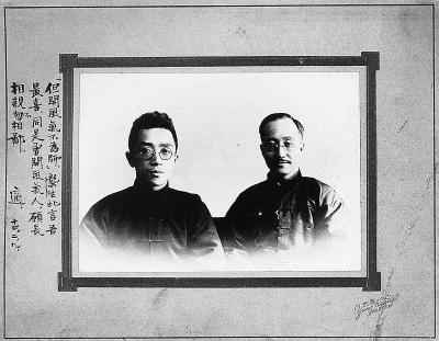 图为章士钊与胡适银监题跋合影照片。 资料照片