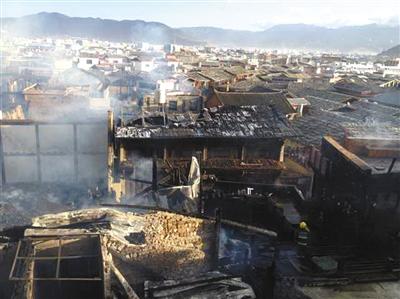 香格里拉古城大火烧242栋房 部分文物被毁(图)