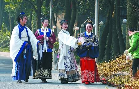 昨日,南岸区黄桷垭,“汉服”发烧友在逛街。 记者 李化 摄