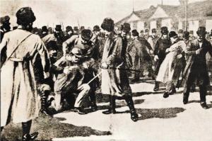 场面顿时大乱,俄国宪兵冲了过来,安重根抛掉手枪,用俄语高呼三声:“高丽亚乌拉!”(朝鲜万岁)然后从容被捕。