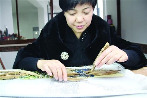 实践中她发现,用缂丝制作名人字画中的水墨画难度比较大,其他人很少做,就瞄准这一空当,专攻这一领域,形成了自己的特色。