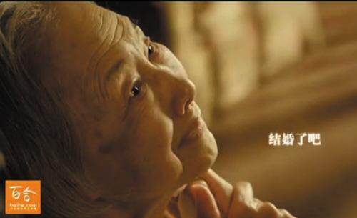 27岁的小孟名校毕业,在一家互联网公司从事产品运营相关的工作,收入颇丰。优秀的小孟迟迟没有交往到合适的男朋友,让家人十分发愁。大年三十晚上,当小孟与家人共进年夜饭时,百合网那则引起很大争议的广告在电视上便开始了。在这则广告中,一个年轻姑娘每次面对年迈的外婆时,外婆总在重复着同样的一句话:“结婚了吧?”几次问询后,姑娘开始痛下决心“我不能再慢慢挑了”,选择求助百合网。在最后一幕中,外婆插着鼻管躺在病床上,看上去生命垂危,姑娘则身披白纱,和一位男士走到外婆的病床前说:“外婆,我结婚啦!”