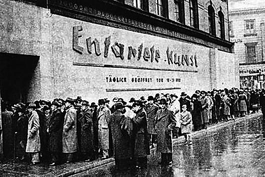 1937年排队参观“堕落艺术”主题展览的德国民众