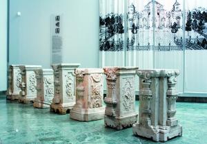 据黄怒波介绍,这7根柱子大概1米多高,是汉白玉材质,外面有雕花造型,由于年代久远加上跨国运输,外部有些磨损。