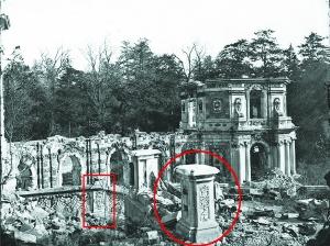 1873年拍摄的圆明园残迹,红圈处就是类似的石刻构件。