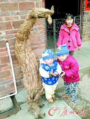 村民挖出83斤"粉葛王" 长1.80米形似龙虾(图)