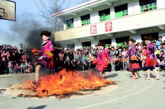 苗族姑娘赤脚穿梭烈焰 展示"过火海"传统技艺(图)