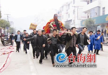 福建龙海犁关公习俗已千载 年轻人抬神像狂奔(图)